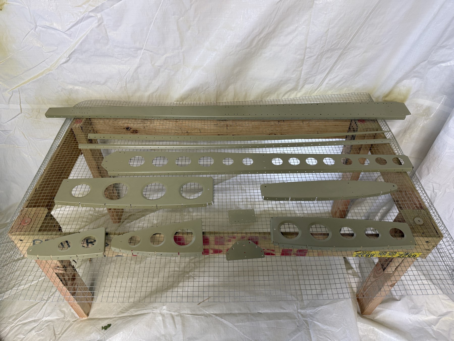 Disassembled, deburred, scuffed, and primed assembly.
