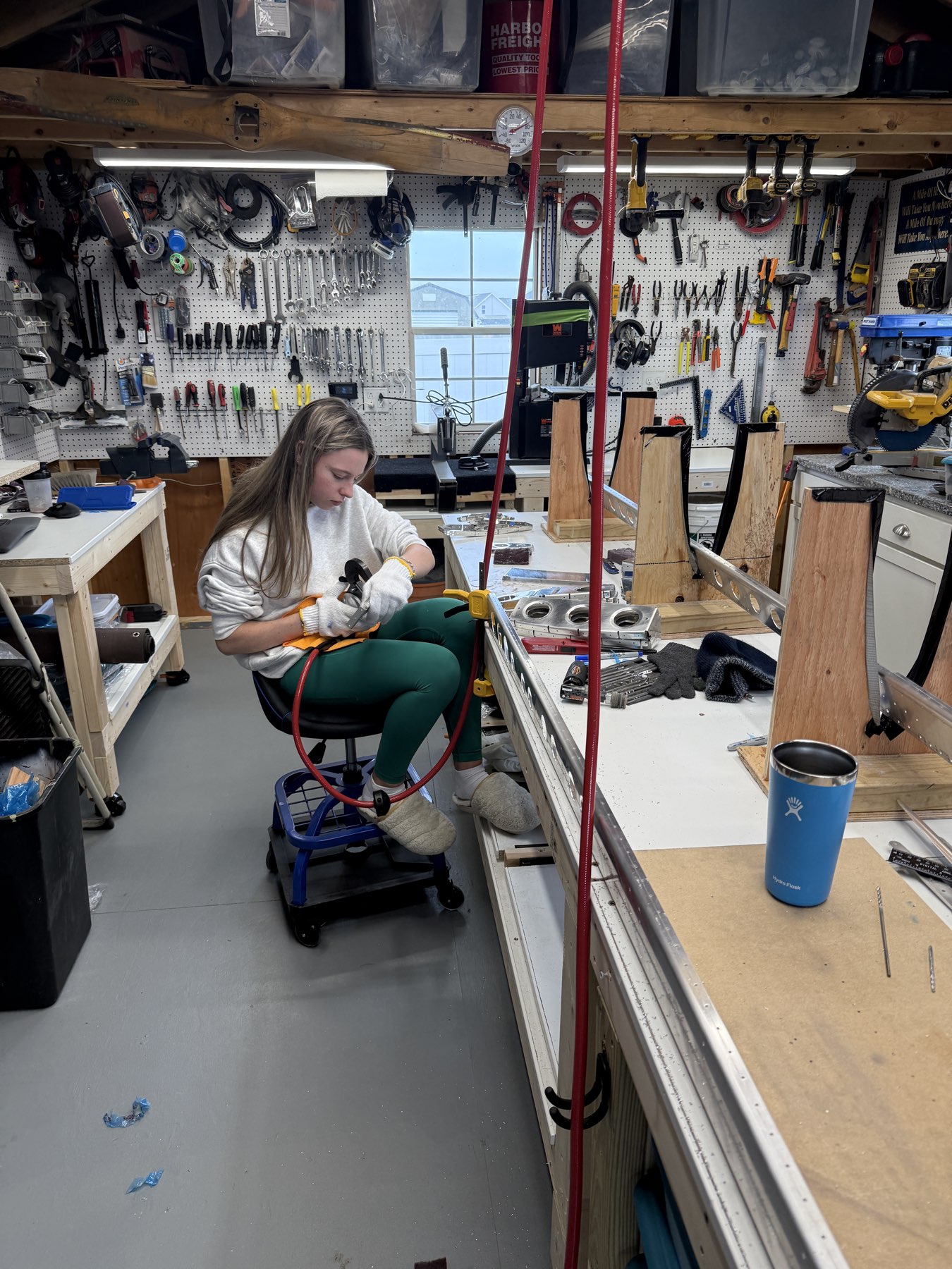 Finished rough fitting of all HS parts. Deburred, scuffed, countersink and dimpled all ribs spars and skins. Autumn helped scuff all ribs and dimpled rib flanges. Accidentally dimpled a new hole in the skin. Was able to flatten it out, ordered 3M structural epoxy to fill in the hole and will then dimple the correct hole.