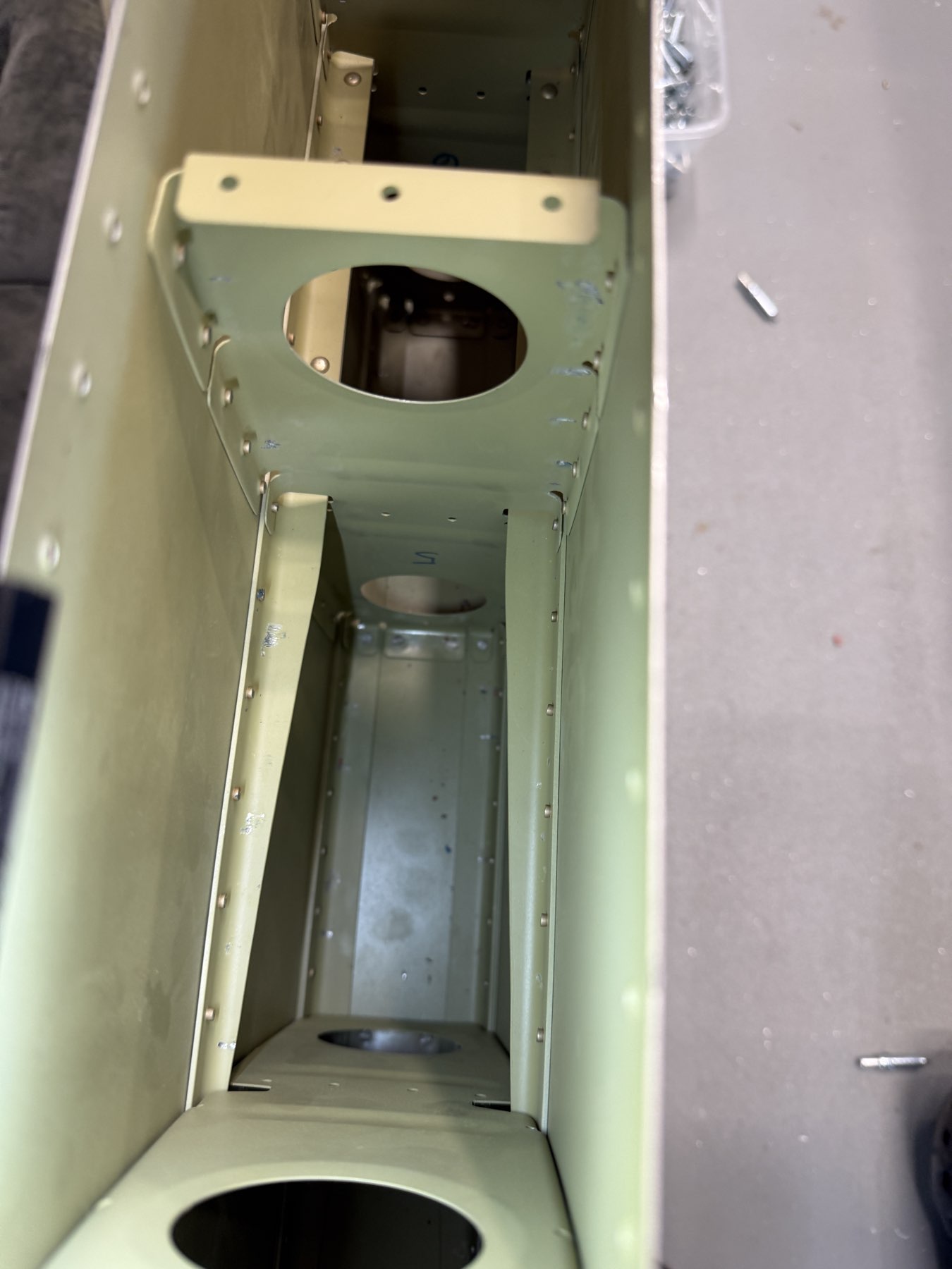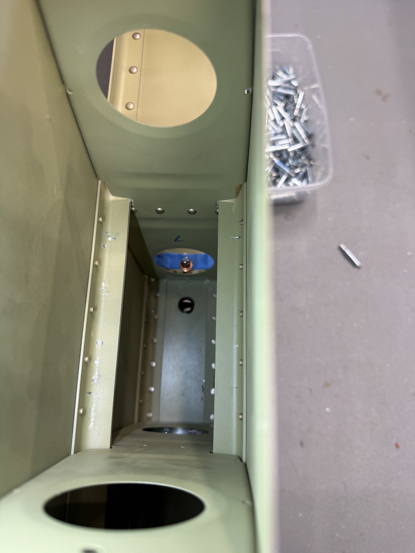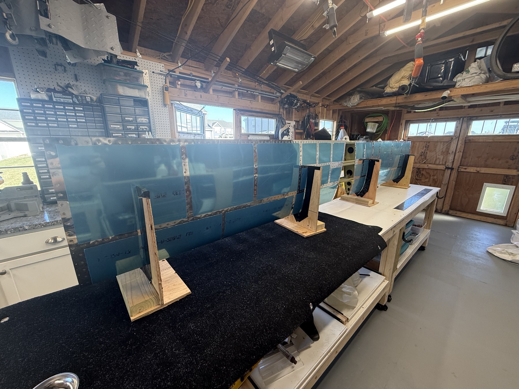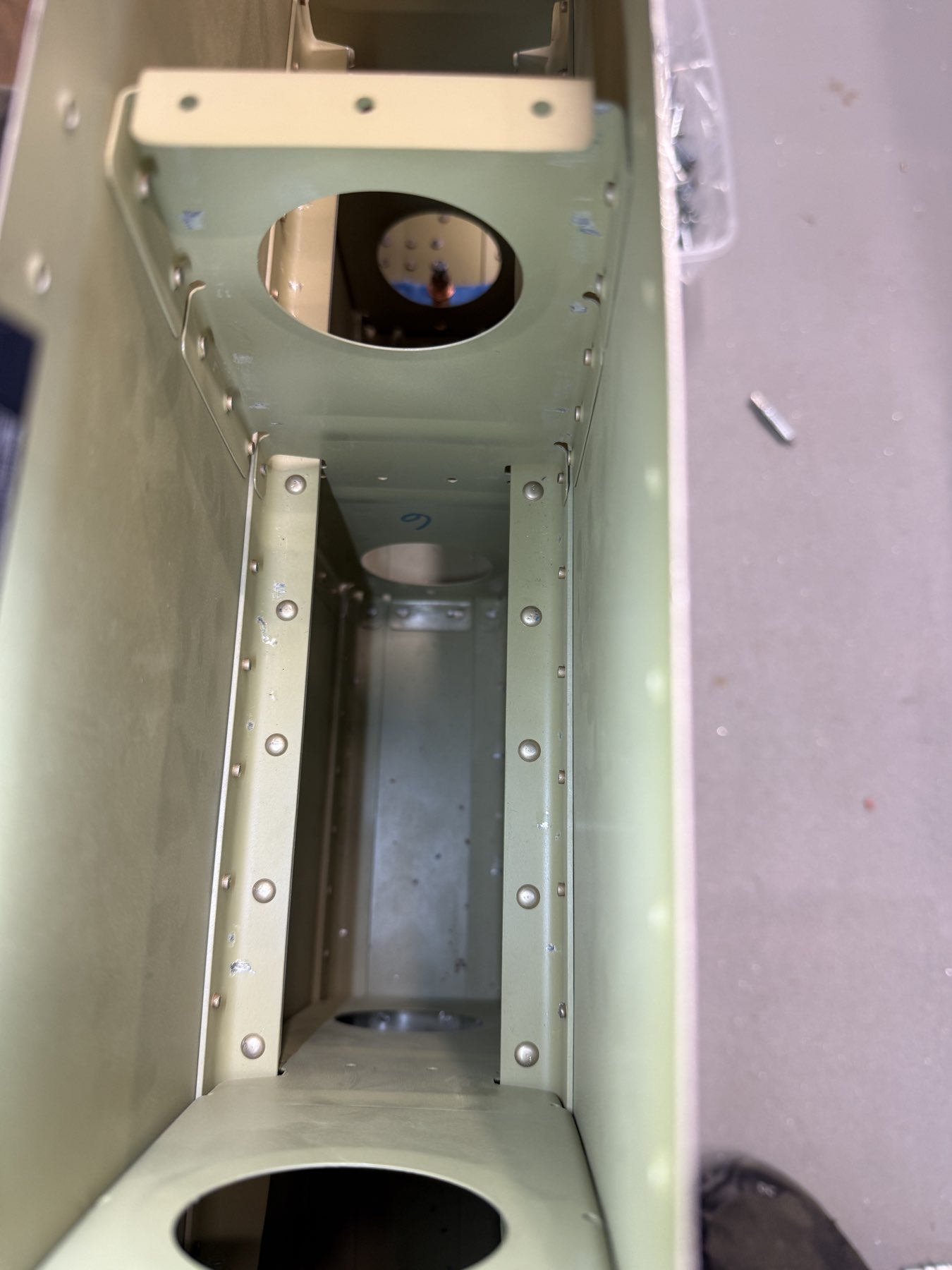 Completed riveting of the HS. Repaired hole created with dimpler on top aft HS skin by filling hole with structural epoxy and laying down a thin film between skin and spar in the area of the hole. Hole was outside of the intended dimple